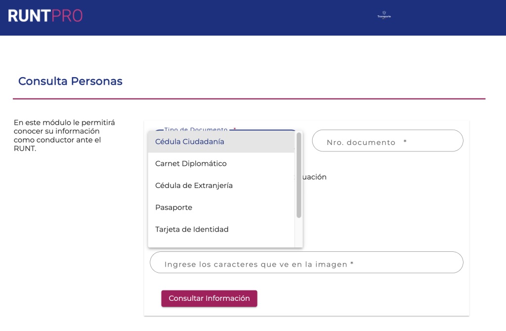 Consultar RUNT por cédula u otros documentos